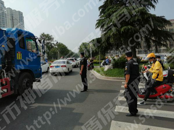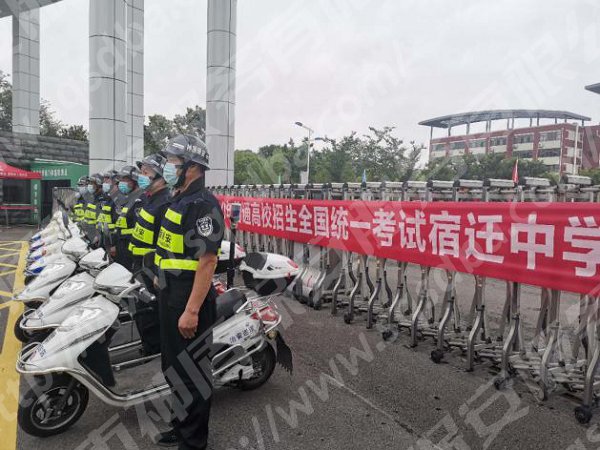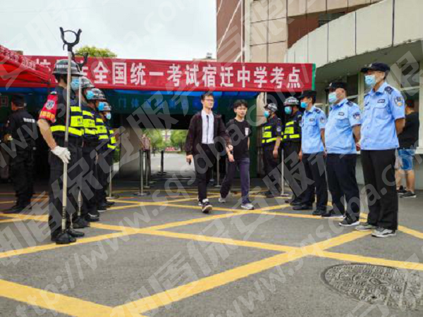 沭陽縣保安服務(wù)公司聯(lián)勤聯(lián)防保安隊員協(xié)助公安機關(guān)對考點周邊道路采取臨時交通管制措施,放置提示標(biāo)牌、安全護欄,布設(shè)警戒線,增設(shè)禁鳴禁停等臨時標(biāo)志,優(yōu)化學(xué)校門口交通保障。