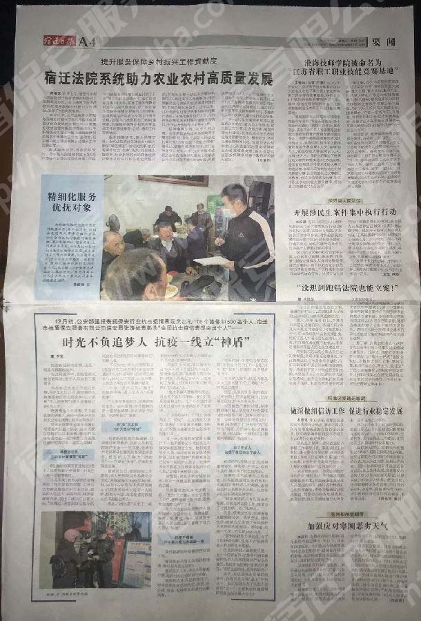 宿遷日?qǐng)?bào)2020/12/23 總第8286期 第A4版 報(bào)道照片