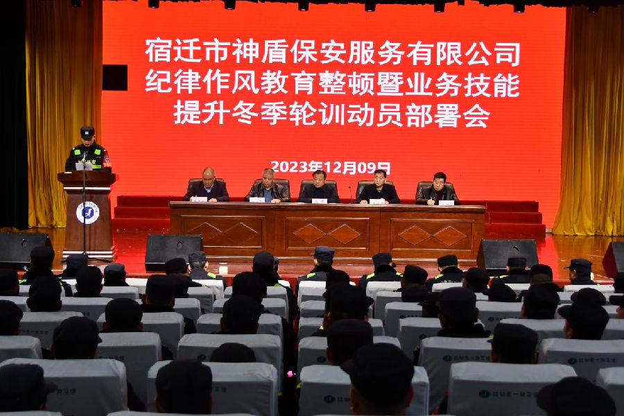為進一步強化隊伍管理,不斷增強員工遵紀守法、遵章守規(guī)的自覺性、主動性,全面促進保安隊伍素質和保安服務質態(tài)“雙提升”,12月9日,宿遷市神盾保安服務有限公司組織召開“紀律作風教育整頓暨業(yè)務技能提升冬季輪訓”主題教活動動員部署會,活動為期60天時間。公司黨委成員、監(jiān)管領導、管理骨干、員工代表共350余人參加了會議。