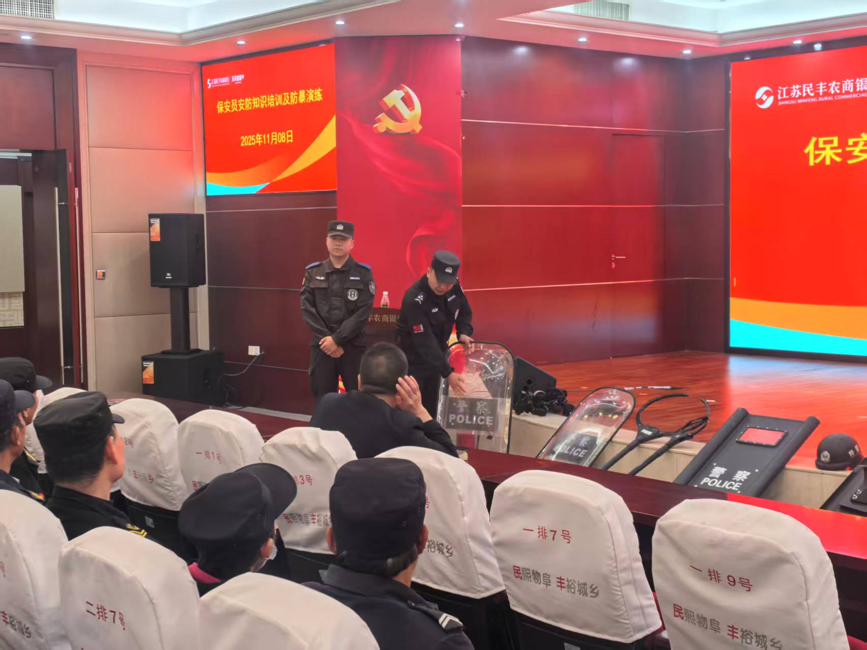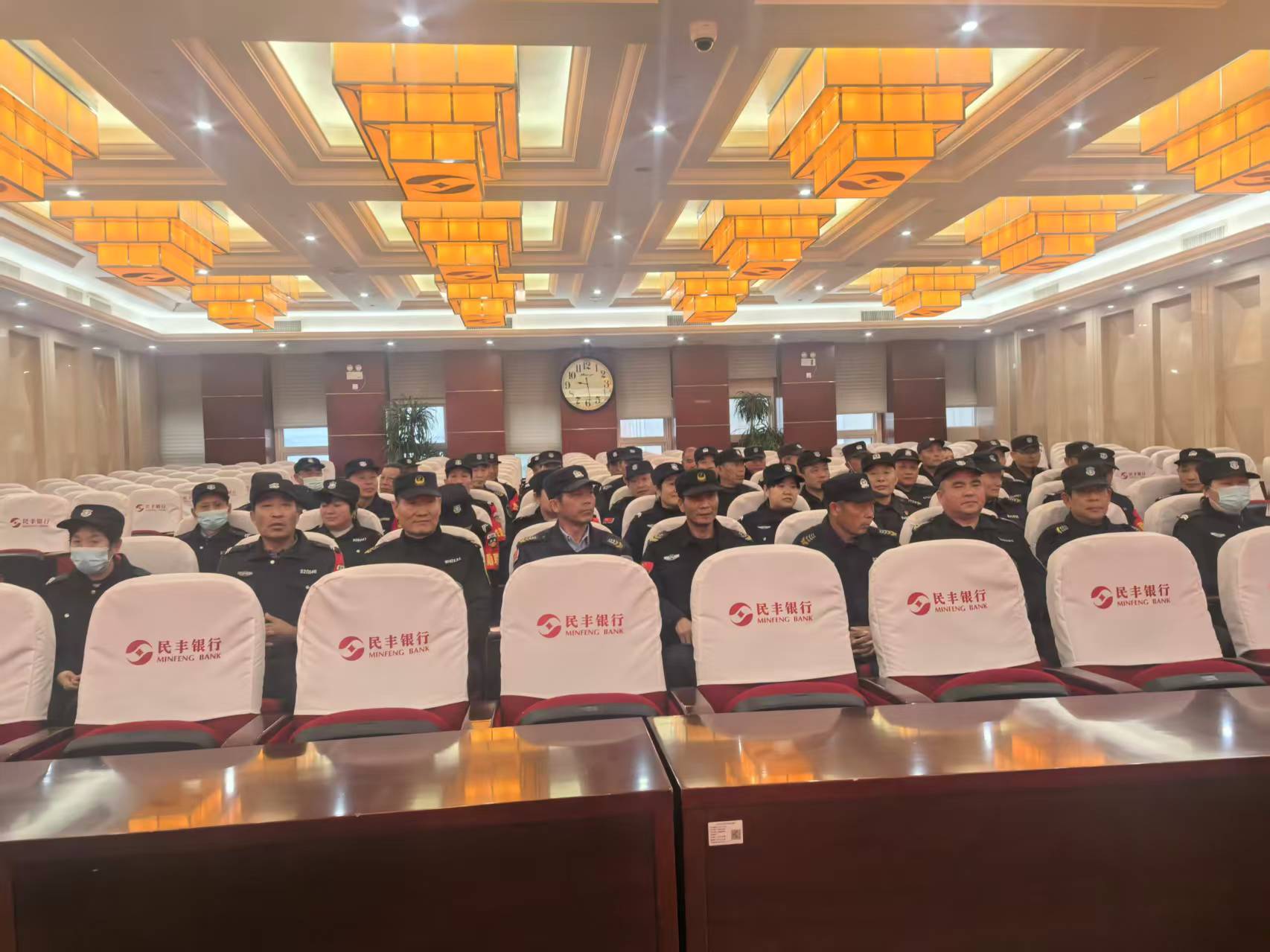 11月8日,宿遷市神盾保安服務(wù)有限公司組織派駐在江蘇民豐農(nóng)商銀行宿遷分行的保安員進行安防知識培訓及防暴演練。本次培訓80余人次,集訓目的是為了確保保安隊員不斷提高安全防范能力,全面提高金融機構(gòu)保安員綜合素質(zhì)和突發(fā)事件應(yīng)對處置能力,切實擔負起平安宿城的責任。