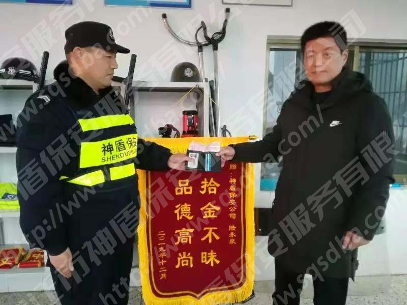 宿遷市神盾保安服務(wù)有限公司保安員拾金不昧獲贈錦旗